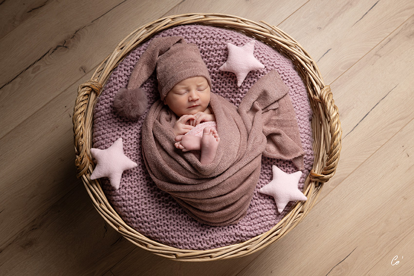 Nouveau-né (-15 jours) à 3 personnes – studio chauffé à 26 degrés, accessoires couleurs différentes au choix, contenants inclus et une expertise de + de 10 ans pour la mise en valeur de votre tout petit : 169€